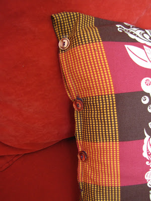 Say hello the newest member of our pillow family, sewn yesterday out of Anna Maria Horner’s Good Folks fabric. When I got this 1/2 yard in the mail it was begging to be made into a pillow. It would have taken much less time to make had I thought about a closure before I started sewing, but the buttons worked out, and I like how they dress it up a little bit. Those buttons are vintage, from my mother’s stash that I’ve kept for 2o years.