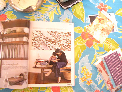 This past summer I did a magazine swap with the lovely Keryn of Eighty Days Design. I got the magazines before I left for a trip home to the US, but for one reason or another didn’t get to delve into them until my return. I also think that because we were in completely different seasons (it was winter for her in July-August), I couldn’t dive into pictures of warm slippers and sweaters, deeper colors like browns, reds and yellow, until now. I think that was one kind of enjoyable outcome of the swap – it gave me something to save for later, and now that we are getting a chill in the air in the morning and evening, sitting down with these magazines is pure heaven. She sent me not only three design magazines, including Vogue Living and Frankie magazine, but also gorgeous fabric and some of her cards.